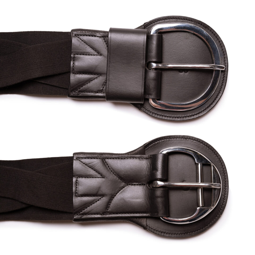 The Tapestry Comfort Cinch has a 6″ leather sternum pad helps keep the girth and saddle in place and offers padding for the pectorals. The elastic is positioned so that it breathes with the horse relieving pressure behind the elbows. Quality stitching details with stainless steel buckles that have leather padding behind them, and 2 ‘D’ rings for attachments. There is a roller buckle at one end and a keeper at the other end.